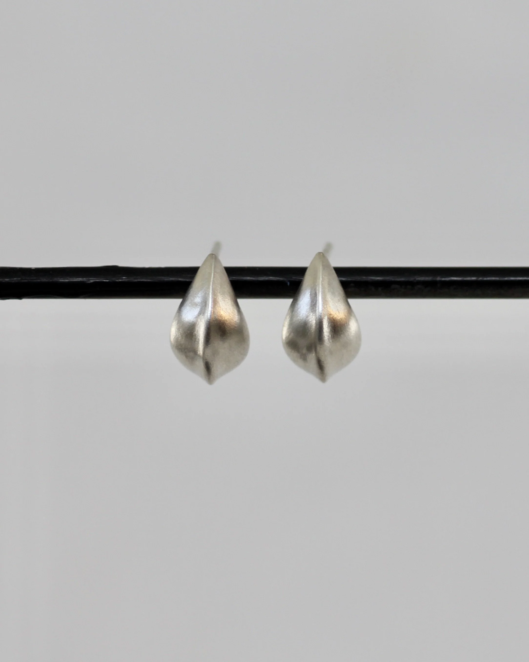 Sculptural, feminine circle studs with rippling edges, and two hammered sterling silver hoops swinging down. These unique earrings make a statement and feel both vintage and modern. Carved in wax and cast in recycled sterling silver, with sterling silver posts and backs.